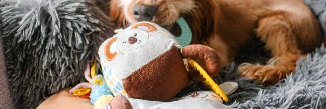 Parfaits dès la naissance, les peluches et les doudous sont des jouets rassurants qui remplissent un rôle affectif important, notamment la nuit ou lorsque le chiot est laissé seul.